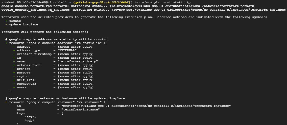 terraform plan -out static_ip
