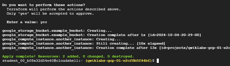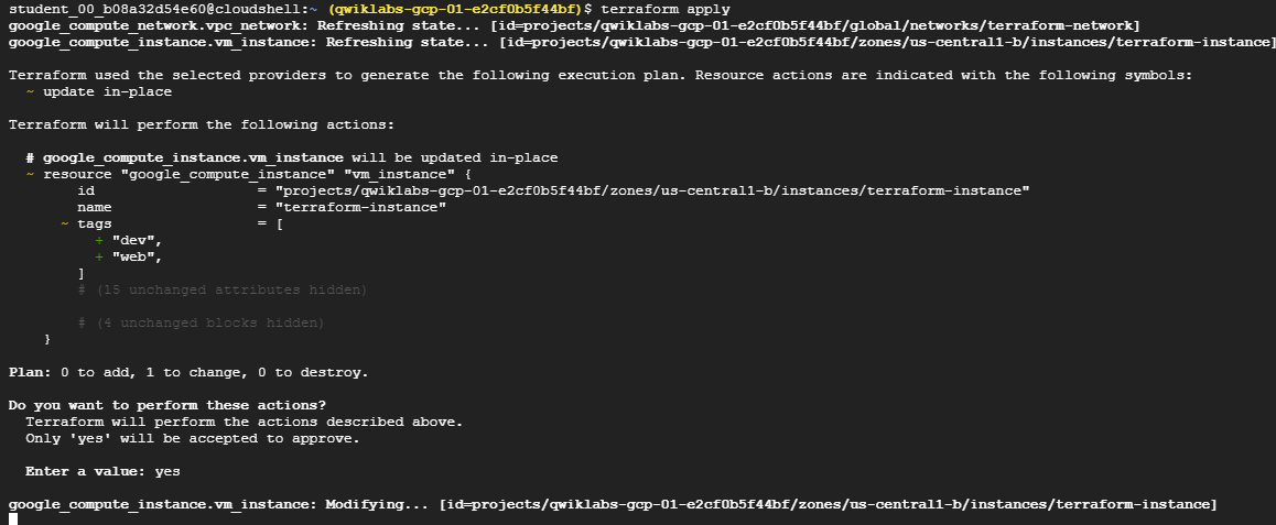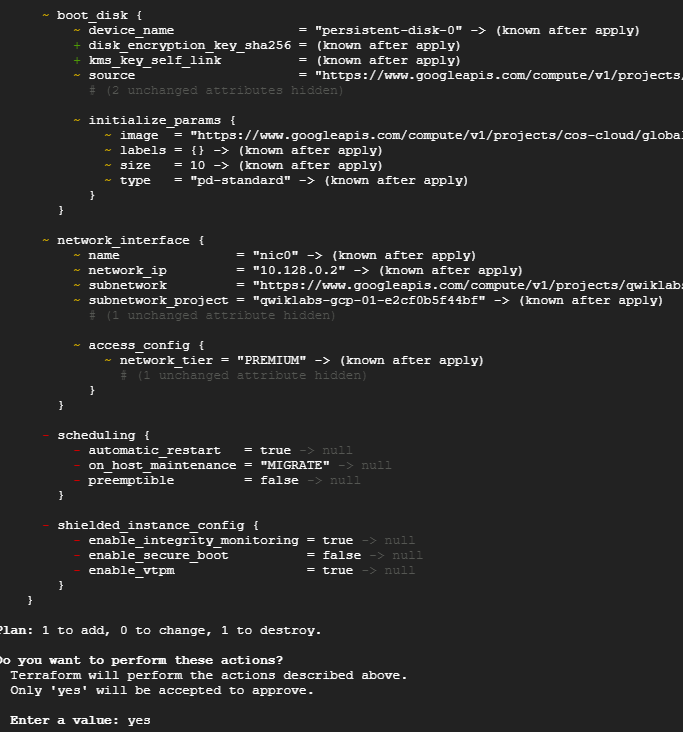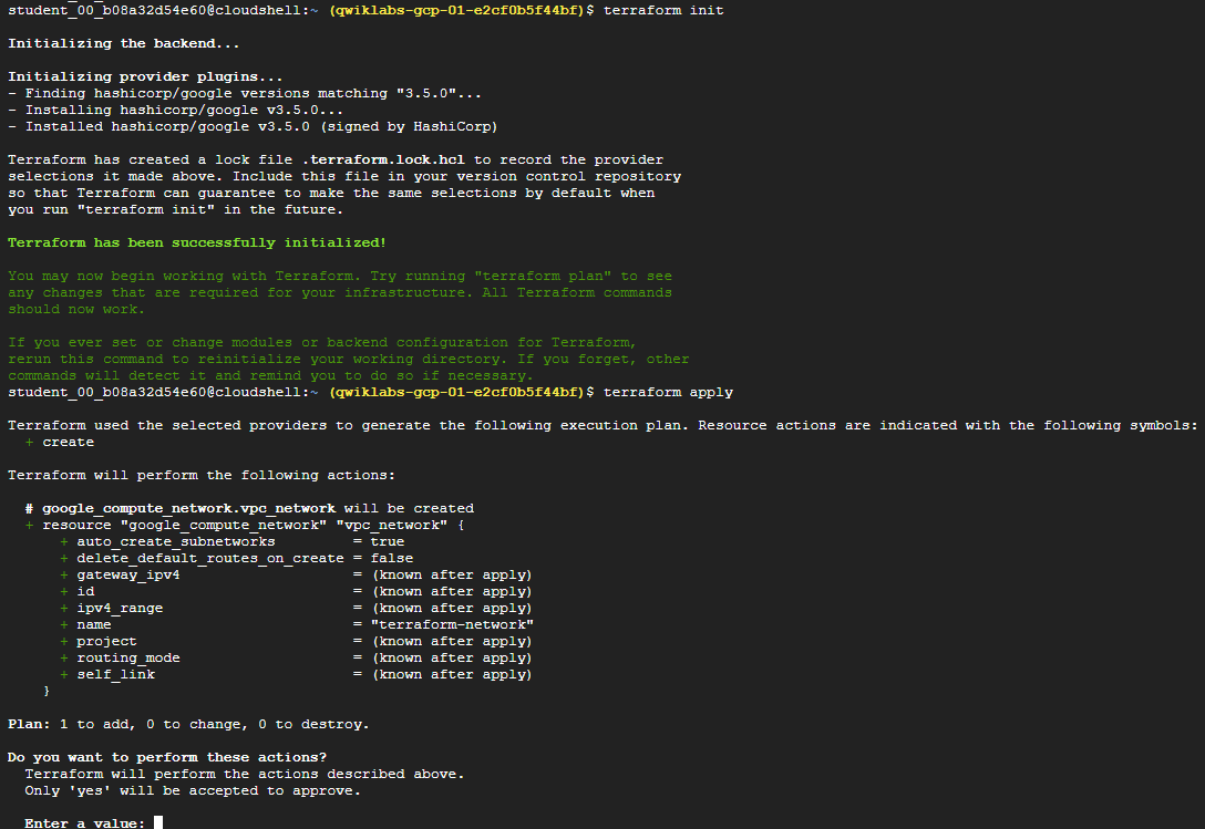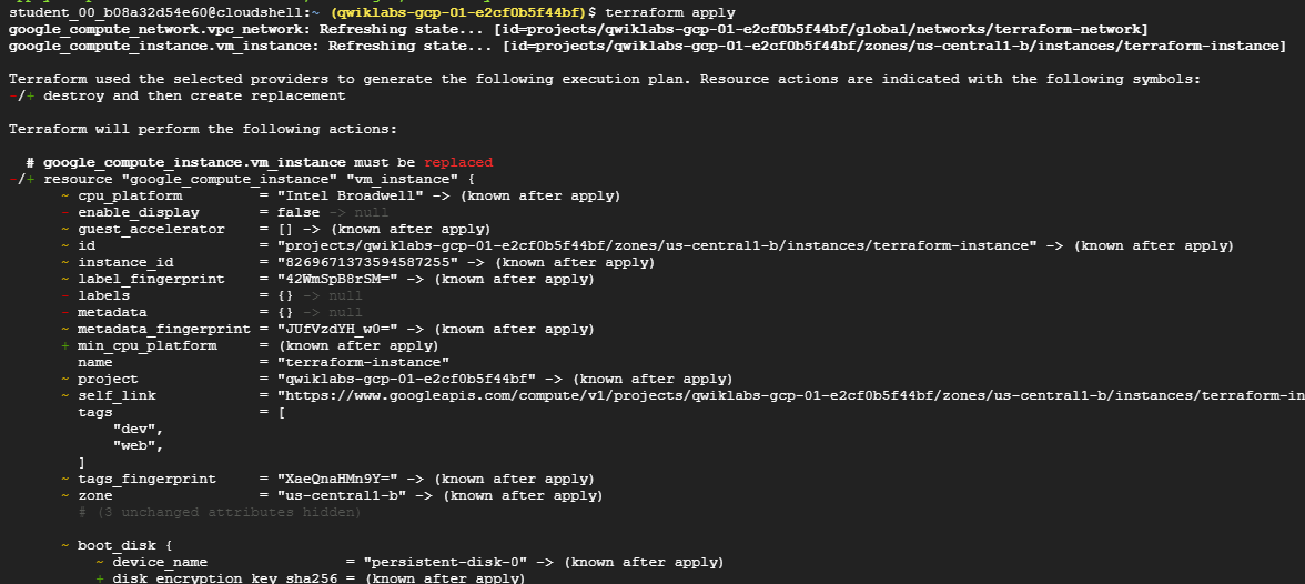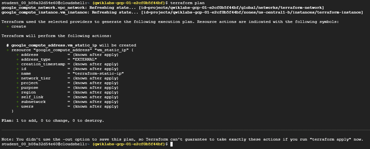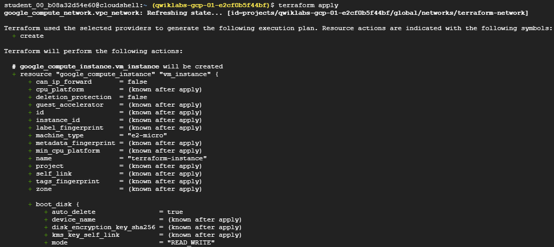 Terraform과 Google Cloud 제공업체가 이러한 세부 사항을 처리하며, 실행 계획은 Terraform이 수행할 작업을 명확하게 보여준다.