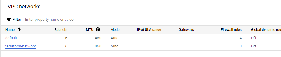 VPC network에서 terraform-network가 생성되었는지 확인한다.