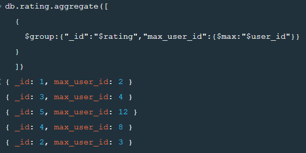 $group:{"_id":"$rating","max_user_id":{$max:"$user_id"}}