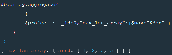 $project : {_id:0,"max_len_array":{$max:"$doc"}}