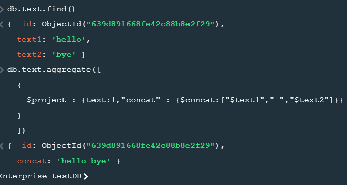 | $concat | 두 개 이상의 문자열을 단일 문자열로 연결 |