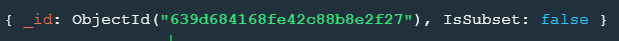 $project : {IsSubset : {$setIsSubset:[[1,2,3,4],[5,6,7]]}}