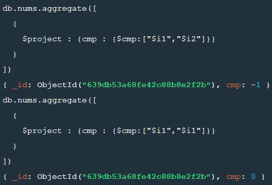 $project : {cmp : {$cmp : ["$i1","$i2"]}}