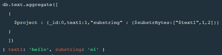 $project : {text1:1,"substring":{$substrBytes:["$text1",1,2]}}