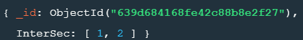 $project : {InterSec : {$setIntersection:[[1,2],[1,2,3,4,5]]}}